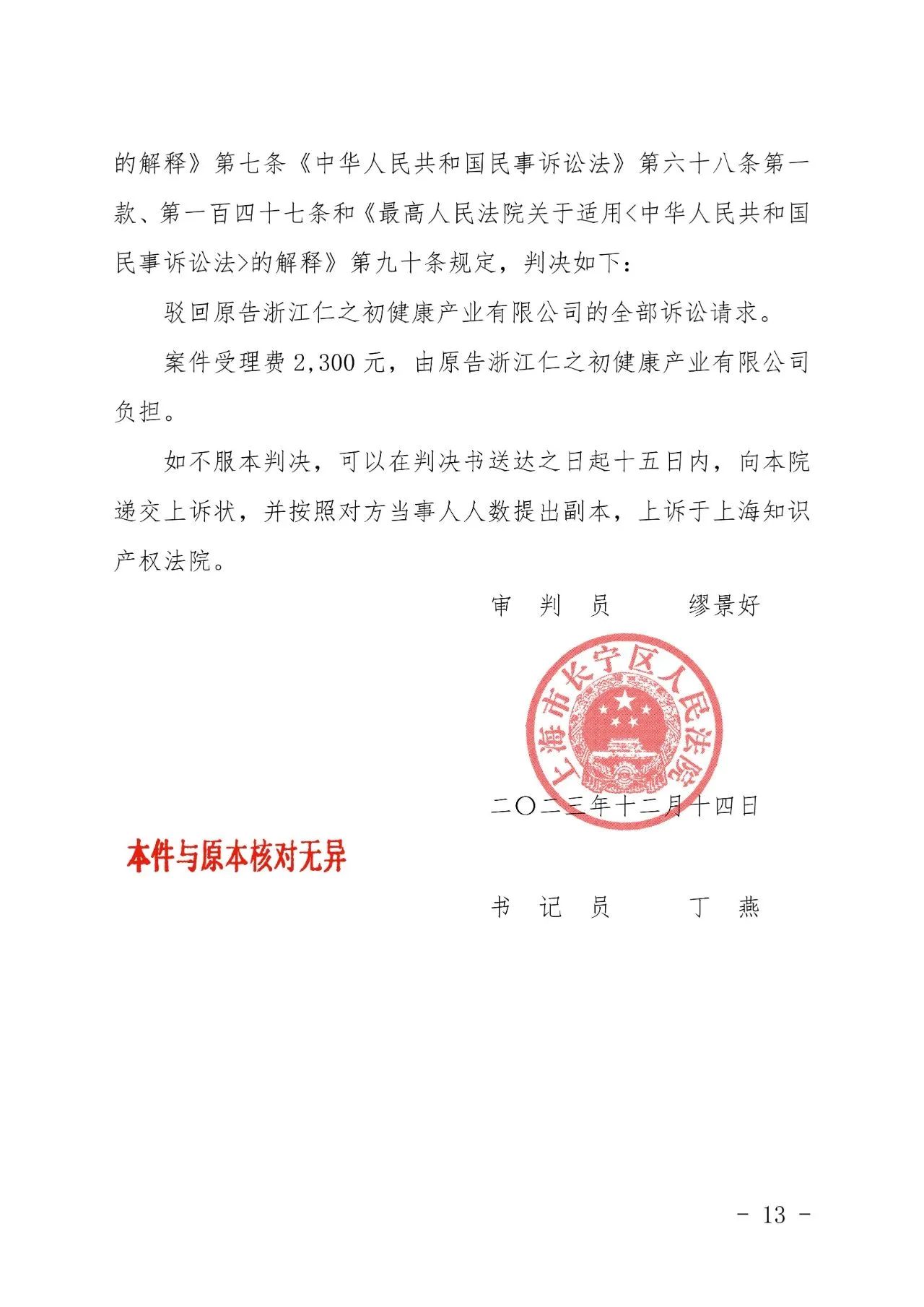 南平辉知胜诉佳讯 | “仁之初健康”著作权及不正当竞争纠纷案,法院:驳回全部诉讼请求!