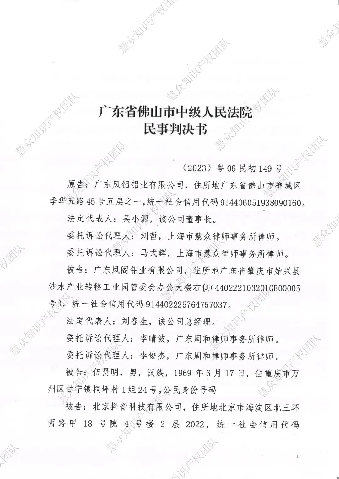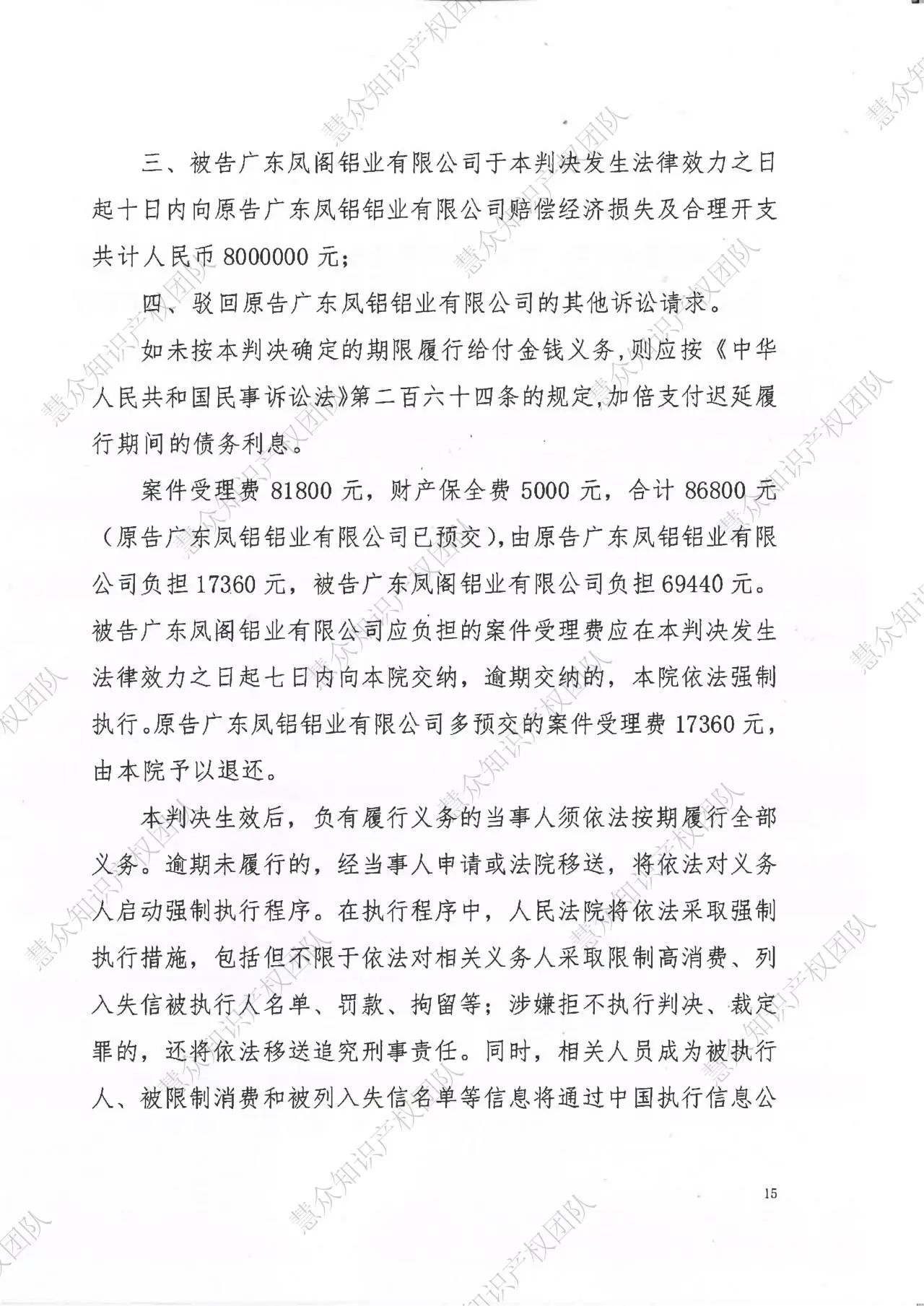 南平判赔800万!辉知队代理“凤铝”商标维权案胜诉